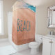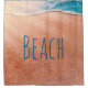 Sandy beach shoreline blue ocean waves. Coastal seashore nautical theme bathroom shower curtains. Beautiful, tropical inspired summer vacation scene home decor. Chic, trendy, modern, elegant, cool travel design. Typography can be customized. Image copyright Marg Seregelyi Photography.