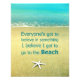 A beach photograph with starfish and the saying "Everyone's got to believe in something - I believe I got to go to the Beach".