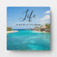 A photo plaque which says: Life is better at the beach. Designed with a beautiful photo featuring a tropical beach resort.