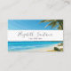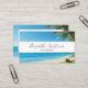 Bring a refreshing, tropical vibe to your professional image with this beach scene business card design. Featuring blue skies, white sands, crystal-clear blue water, and lush palm trees, the front includes a clean white stripe for your customizable name and title. The back showcases the same serene beachscape with a white square for your contact details—phone number, email, address, and website. Perfect for professionals who want a calm, relaxing, and inviting design.