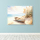 This stretched canvas wall art is shown with a lovely beach scene watercolor art print.
