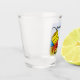 A fun beach scene with a happy red crab, a yellow pail and shove against a blue sky and ocean makes up this summertime shot glass. Customizable so you can add your own text and change the background colour. Makes a great gift!