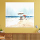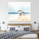 Charming beach scene with people and umbrellas by the water, bringing summer vibes and relaxation to any space.