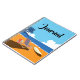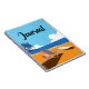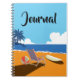 Beach scene with Surfer, chair and bright orange and blue as the dominant colours.  What a sunny bright and colourful beach scene on a journal cover. The word JOURNAL is completely customizable and can be changed to anything you'd like or eliminated together.  Makes a perfect notebook for just about anyone.  Great for a Christmas gift or any time of the year.  ENJOY!  Dimensions: 6.5" x 8.75"  --  80 black & white lined pages. Lay flat spiral binding.