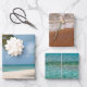 A different beach scene on each sheet: Palm trees waving on a sandy beach view, waves lapping the sand, blue and teal ocean water. Dress up your gifts for beach lovers!