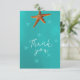 Modern whimsical aqua blue wedding thank you card, perfect for a modern beach, sea, oceanfront, coastal, tropical, nautical or destination themed wedding.