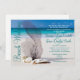 This beach wedding invitation features a beautiful beach scene with coral and seashells on the sand and the ocean in the background. Perfect for a beach wedding or destination wedding. Customize the invitation with your own wedding details. Matching RSVP also available.