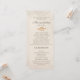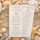 Magnifique programme de cérémonie de mariage au bord de la plage couleur sable et carte de fête de mariée avec un thème coquillage.