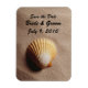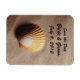 Plage de sable avec un mariage coquille de pétoncle, sauf l'aimant de date.