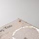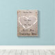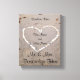 A sea shell heart on a sandy beach.  Personalized with first names, last and wedding date.
