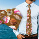 Beach shells pattern neck tie. A fun addition to a beach wedding, for the groom, groomsmen, or invited guests. Pink conchs, sea horses, starfish, scallop shells, spotted junonia and more are part of the pattern over a sandy brown background colour.