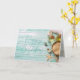Happy birthday card template for her. This folded card features blue wood boards with spa essentials and seashells on the front. Inside, the background is a serene seashore with a place for the message and signature in modern, handwritten script font. This card comes in three sizes, with the large size perfect for giving from a group. It is perfect for a best friend or sister.