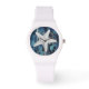 Beach Starfish Blue Rustic White Wristwatch is a beautiful beach design from a personal photo of a Florida starfish with a rustic blue wood plank background added. Customize if you'd like.