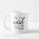 Make A Wish Upon A Starfish Coffee Mug. Beach typography mug with "Make A Wish Upon A Starfish" text in black with starfish by JennsEmporium.