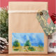 A watercolor of a great lakes beach on a sticker. art by Kristina Anderson