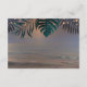 Sunset seaside palm leaves string lights wedding guest information
