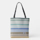 A classic neutral stripes pattern bag in blues, greys and sand colours that will go with anything and never be out of style. Edit your monogram and done. See matching beach towel and other items in this "Beach Stripes and Starfish" collection at Camp_and_Cottage on Zazzle.