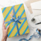 The colours of a tropical beach are found on this diagonally striped wrapping paper--sea blue, lime green, tangerine orange. Festive, bright, perfect all occasion wrap for children or adults.