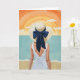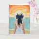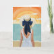 This stationery features a portrait of a woman wearing an oversized sun hat looking at the sunset over the beach.