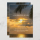 Funeral remembrance invitation featuring a nature, palm, and sunset on the beach celebration of life template that is easy to personalize.