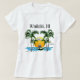 A classic beach design of a palm trees and beach sunset for the Waikiki, Hawaii. A awesome gift for any Hawaiian vacation.