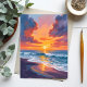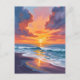 Beach Sunset Watercolor Ocean Painting Postcard