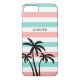 Replace the name drop template with your own name or monogram initials to make this smartphone case your own. Designed in beautiful tropical colours with palm trees and stripes pattern that adds modern flair to the design.