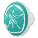 Beach theme sand dollar shell door and drawer pull knobs or handles. Nautical / Tropical design with turquoise blue / sea green background colour. Customizable background colour. Sanddollar icon. Make your own exotic style interior. Fun DIY accessories for home and office. Great for beautiful seaside / coastal kitchen, bathroom, bedroom cabinets, nursery, baby room etc.