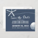 Simple Navy Blue Starfish & Sand Dollar Beach Wedding Save the Date Announcements.