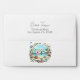 Complete your beach-themed bachelorette weekend social club stationery with this elegant envelope featuring soft pink and white stripes on the liner and a charming coastal scene framed by floral accents on the flap. Perfect for invitations, thank you cards, or keepsakes, this design adds a sophisticated seaside touch to your event. Ideal for tropical, coastal, or nautical-themed celebrations.