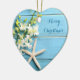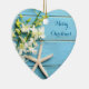 Beach themed Christmas ornaments (heart ceramic) with starfish, orchids and customizable text.