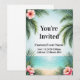 Invite guests to a tropical celebration with this beautiful customizable beach invitation, featuring a serene shoreline, swaying palm trees, and vibrant pink hibiscus flowers. The coastal design sets a relaxed yet elegant tone, perfect for birthdays, weddings, bridal showers, bachelorette parties, luaus, or destination celebrations. With easy customization options, you can personalize the text to suit your event details, making this invitation ideal for any tropical-themed occasion. A stunning way to welcome guests to a sunny, island-inspired celebration.
