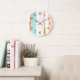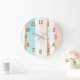 Wall clock in beach tones of turquoise, sand, rose gold, white. Great for home, cottage or as a gift.
