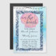 This invitation feels like a soft whisper of the ocean, gently drawing you into a celebration of love. Against a serene backdrop of calming blues and gentle turquoise swirls, reminiscent of the waves that caress the shore, hangs a delicate string of lights—each one symbolizing the warm glow of the love that brings two souls together.