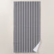 This beach towel is shown in a black and white stripes design.