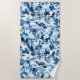 This beach towel is shown in a multi blue colour camo print.