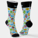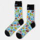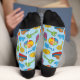 Beach toys icon set. Bucket, fish sand molds, toy shovels, ship and beach ball. Seamless pattern. Custom background colour. Custom top stripe colour. Custom text on each sock.