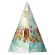 A tropical beach Bachelorette party to commemorate your last fling before the ring. Because no good story ever started without tropical paradise! Invite, enjoy and celebrate with your nearest and dearest family, friends. Perfect celebration with a party hat for a beach cocktail theme. This unique paper hat can be used as party favour. The design features, tropical beach, blue waters, cocktails, tropical fruits and ocean. Easily customizable with your choice of text and script.