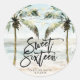 A tropical beach and palm trees design sweet 16th birthday sticker with string lights and sandy beach. Easy to change or delete the text field available to suit your personal requirements. Please visit my shop to find matching items in this collection such as invitations, rsvp, thank you etc.