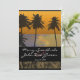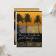 Beach Tropical Wedding Invitations feature a sunset scheme in a tropical paradise. Ocean depicts sunset reflections. Invites also feature palm trees and glorious sand for an elegant invite for wedding guests. Customize the text, fonts and colours to your choosing, if you prefer.