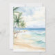 A watercolored sandy beach, ocean waves and palm trees as background. Personalize and add a date and your names. The text: Save the Date is written with a large trendy hand lettered style script.
