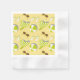 Beach design pattern with sunglasses and sun hat on a sand yellow background