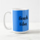 Cool blue and light green stripes pattern and a customizable text saying: Beach vibes. Fits a cheerful marine style.