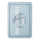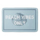 beach cottage theme design with customizable "beach vibes only" text in distressed white font, blue background and vintage blue tinted seashell illustration