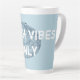 beach cottage theme design with customizable "beach vibes only" text in distressed white font, blue background and vintage blue tinted seashell illustration