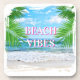 This plastic hard coaster set is shown with a Beach Vibes beach palm print.