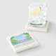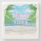 This marble stone coaster set is shown with a Beach Vibes beach palm print.