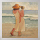 One of the most beautiful mornings at the beach -- this mother and baby are mesmerized by the sunrise over the ocean. We see the back of the mommy and the baby as they walk toward the ocean water. They are looking out over the horizon. There are beautiful white clouds over the horizon. The mother and baby gaze over the water. Are they thinking this will be a wonderful beach day? The mom is wearing a long white dress - a beach dress she wears over her swimsuit. She has dark hair covered by a wide-brimmed straw hat. Perfect attire for a wonderful day at the beach. The baby is wearing its all-together. The whole scene is the colour of the beach - tans and blues. This is the perfect gift for the beachcomber in your life, and for the person who loves the ocean. It's a great image to celebrate your mother, and for mother's birthday or Mother's Day.