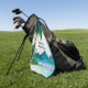 Beach Golf towel with Watercolor beach blue green background, tropical pink flamingos. Use personalize this template to change text. More products with this design are in the collection below.