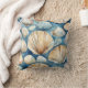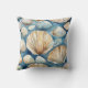 Beach Watercolor SeaShells Blue Beige Coastal Throw Pillow